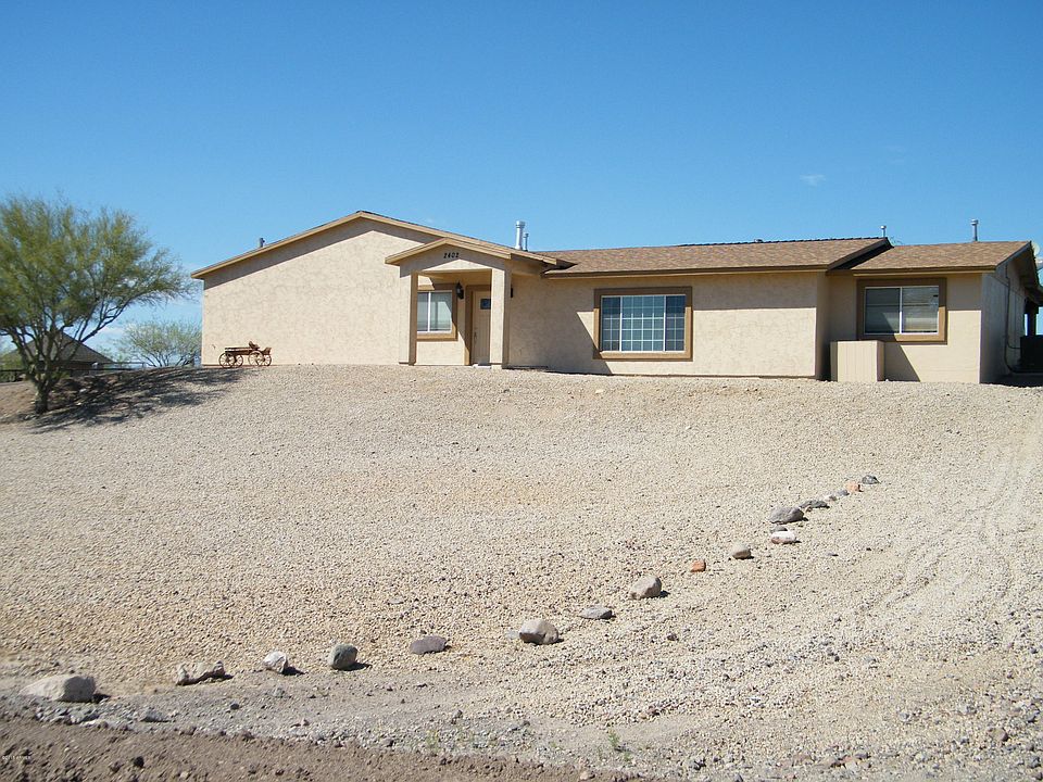 Great family home with 4 bedrooms, 3 full baths and an extended 3 car garage! Situated on a large hilltop lot with beautiful views. Enter through the front door into a spacious front room with a gas fireplace and built-ins. All wood trim and doors. Large updated kitchen with 42'' cabinets, lots of counter space and storage. Over sized master with attached bath. Large laundry room. Neutral tile throughout, laminate in family room. 2,500 gallon water storage tank that is monitored electronically and delivered automatically by water hauler. Bring your horses and toys and still have plenty of room left!