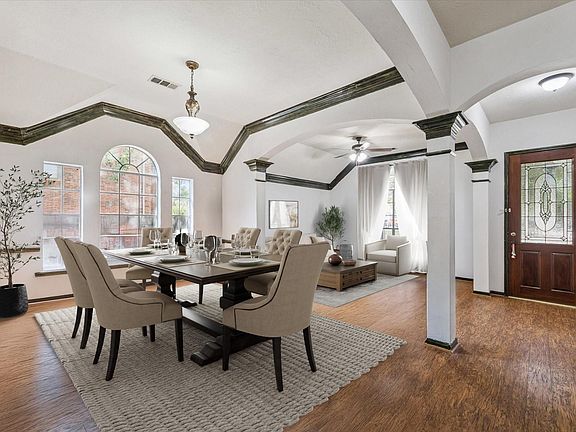 Cozy gaslog fireplaceGenerous family roomBreakfast roomOpen kitchenLarge fenced backyardLarge primary suite