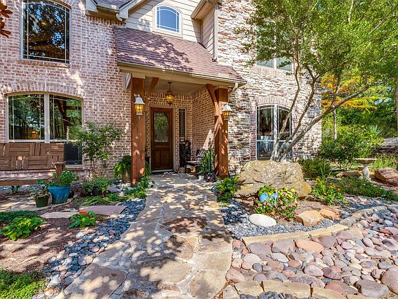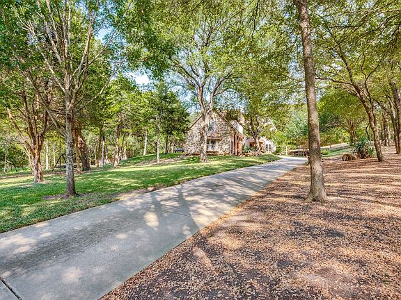 Tucked away at the end of a quiet cul-de-sac, this home offers ultimate privacy and backs directly onto the lush Lester Lorch Park nature preserve. Set on three sprawling acres, this stunning four-bedroom retreat features two full and two half baths. Step inside to find a formal dining room to your left and a sunlit living area ahead, where vaulted ceilings and soaring windows flood the space with natural light. A striking stone fireplace adds warmth and charm. The island kitchen is a chef’s paradise, boasting granite countertops, a brick accent wall, a breakfast bar, stainless steel appliances, a stylish tile backsplash, a spacious pantry, and abundant storage. Enjoy your morning coffee in the breakfast nook, illuminated by decorative lighting and offering breathtaking views. Throughout the home, custom paint and a blend of concrete, ceramic tile, and plush carpet create a sophisticated ambiance. Wake up to the gentle songs of birds outside the primary suite, which is located downstairs and features a cozy sitting area, a luxurious ensuite with dual sinks, a separate shower, a soaking tub, and a generous walk-in closet. An office with built-in shelves and a convenient half bath complete the first floor. Upstairs, you’ll find three additional bedrooms, two with direct access to a shared bathroom, plus a media room and a second living area with built-in shelving. Savor peaceful mornings on the covered patio or deck, watching hummingbirds and butterflies dance through the garden, or unwind with a round on your private putting green. Early morning strolls through the nature preserve evoke the serenity of Colorado, yet you’re just 25 minutes from downtown Dallas. This extraordinary home is ready to welcome you—come make it yours.