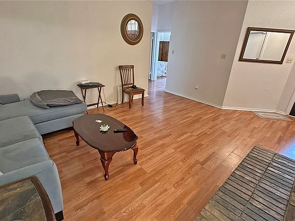 The primary bathroom includes a garden tub, and the primary bedroom is generously sized. The living room is open to the eat-in kitchen, which is equipped with a dishwasher, garbage disposal, electric range, and range hood. Luxury vinyl flooring installed in the kitchen and dining areas.