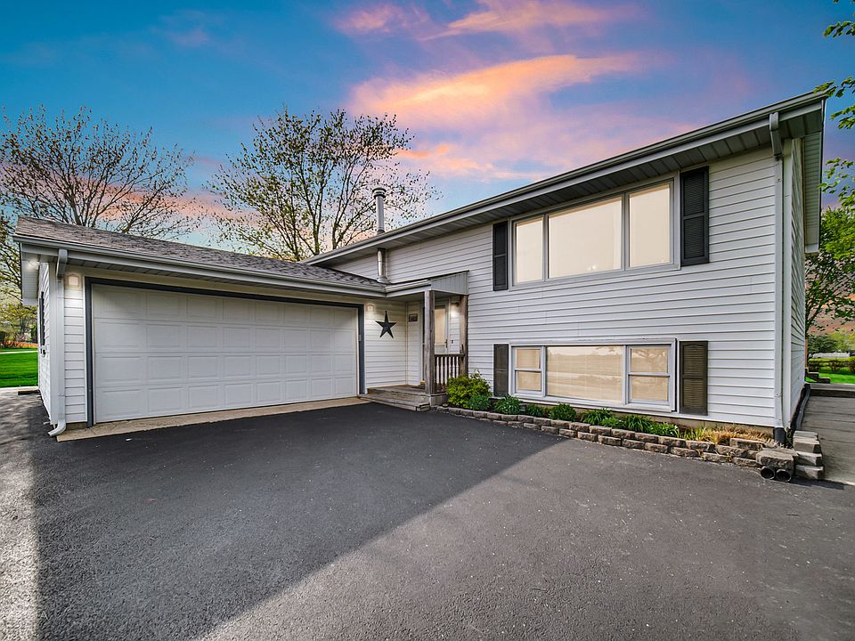 Open concept Raised Ranch on 1/2 Acre Lot in unincorporated New Lenox features remodeled eat in kitchen w/ granite counter tops, 42" maple cabinets & double breakfast bar. Kitchen open to dining room & living room w/ large windows w/ an abundance of natural light. Updated master & shared bathrooms with granite vanity and tiled shower. Partially finished lower level just needs a few of your finishing touches to double your living space! Roughed in plumbing for lower level bathroom. BRAND NEW Septic System! Tear off roof (2020), Hot Water Heater (2020), Furnace & A/C (2013), Sump Pump (2017)! Bonus Vermont casting wood stove in basement can easily heat the whole house. 2 car attached garage, maintenance free composite decking, & large backyard ready for summer entertaining! New Lenox Schools, Lincoln-Way High School!