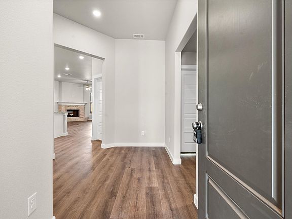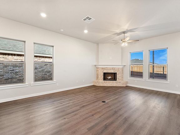 Our Nikki floor plan offers a warm and inviting atmosphere for all of life's moments to unfold!The Nikki floor plan features:Brick exterior accented by double craftsman-style columns framing the covered front porchLuxury vinyl plank flooring in the home's common areasOpen-concept kitchen, living, and dining areaGranite or quartz countertops throughoutSpacious kitchen peninsula with bar seatingStainless steel appliancesLarge enclosed pantryCorner brick fireplacePremium plumbing and lighting fixturesSecluded master suite with drop-in tub, walk-in shower, his and hers vanities, and walk-in closet with utility room accessCovered back patio*Fireplace not included in floor plan but available as an upgrade. Only available on new build homes in Lubbock, Midland, and Odessa.