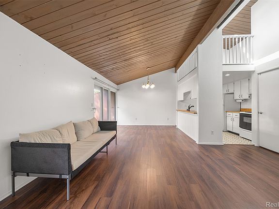 Welcome home! This spacious 2-bedroom, 2-bathroom unit offers over 1,100 square feet of well-designed living space. Enjoy an airy, open-concept layout in the living and dining areas, featuring new luxury vinyl plank flooring, soaring vaulted ceilings, and an abundance of natural light pouring through floor-to-ceiling windows. The updated kitchen is both stylish and functional with refinished tile flooring and beautiful butcher block countertops. Both generously sized bedrooms also feature vaulted ceilings, ample closet space, and plenty of natural light. A unique bonus loft above the kitchen offers the perfect spot for a home office, reading nook, or additional storage. Step outside through the sliding glass doors to your private balcony, where you’ll enjoy serene views of the community greenspace and pool—an ideal spot for morning coffee or relaxing in the evening. Convenience abounds with a shared laundry room located on the same floor and used by only four units. The condo includes one assigned carport space with additional guest parking available. Located in a prime Ann Arbor location, you're just a short walk to the Big House, downtown, and multiple parks and nature areas. Plus, you're right on TheRide Line 5, offering direct access to both Ann Arbor/UM and Ypsilanti/EMU, with plenty of shopping and dining options nearby. Enjoy hassle-free living with an HOA that covers trash and snow removal, landscaping, exterior building and common area maintenance, water, sewer, basic cable, and gas. Don’t miss your chance to own this beautifully updated and ideally located condo—schedule your showing today!