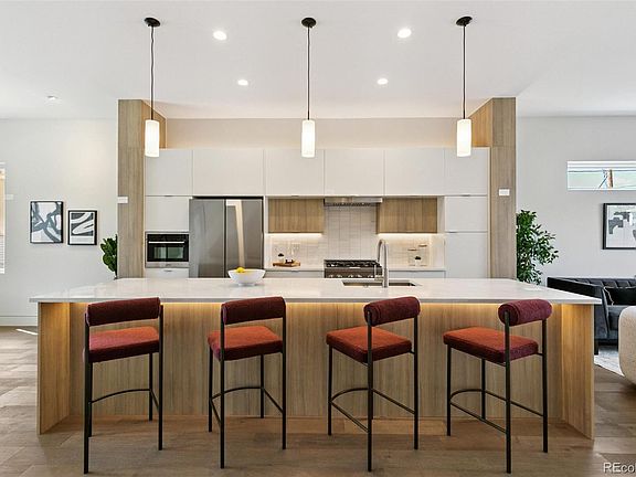 Incredible SOBO New Build with a Mid-Mod/Scandinavian vibe! Super artsy, creative design! FULL of cool, unique, gorgeous custom features! HALF-DUPLEX. Almost 500 Extra Square Feet in covered patios! ENERGY EFFICIENT! OWNED SOLAR PANELS! Not leased! If you want to live where you mega-save on utilities, in an amazingly thought-out and beautifully designed new build, then this gorgeous home is for you! Almost completely maintenance free exterior! All metal vertical siding! 97% Efficient Carrier Furnace, Owned Smart Sandbox Solar system, Hybrid Heat Pump Water Heater, Highest efficient Carrier A/C unit (amazingly quiet!), Andersen Fibrex Windows, LED lighting, Highest Insulation - R60 roof and R30 walls! Major attention to detail and artistry you rarely find in new construction: Custom GLASS Stair Wall with Handmade Maple block railings matching the gorgeous steps!! Covered front & rear patios and upper decks all have Custom tongue and groove Cedar Ceilings with Internal Trex drainage system: an extra 500 sqft in exterior decks! TALL Ceilings -10' main floor, 14' feet vaulted upper, and 9' Lower level! Stellar kitchen that any chef will love! 12' island with higher-end quartz, bookended cabinetry, Samsung twin cooling fridge with beverage center, dual fuel gas range, above/under LED lighting! Open, bright main floor plan flows from the front to the rear, with no interior soffits!! Cozy Living space with gas Scandinavian fireplace, custom maple shelving, huge windows! Custom features galore: flat drywall finish, flush baseboards, handmade maple vent covers, cool dry bar, wall washer LED lighting, soft close pocket doors, window well lighting, mud room bench and shelving. Upstairs offers two large bedrooms! Skylights! Primary with walk-through closet! Dual Shower Heads! Lower level has a great living space, huge bedroom and bath! Wet Bar! Close to all the fun action on S. Broadway! No HOA. Party Wall agreement with north unit. Builder Warranty! Walk to Light Rail!