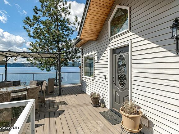 Experience luxury lakefront living overlooking beautiful Lake Coeur d'Alene. This stunning four-bedroom, three-bathroom home features two spacious suites and was thoughtfully remodeled in 2015. Enjoy over 100 feet of private waterfront and breathtaking sunset views from every room, with upper and lower wrap-around decks featuring sleek glass railings to maximize the scenery.
