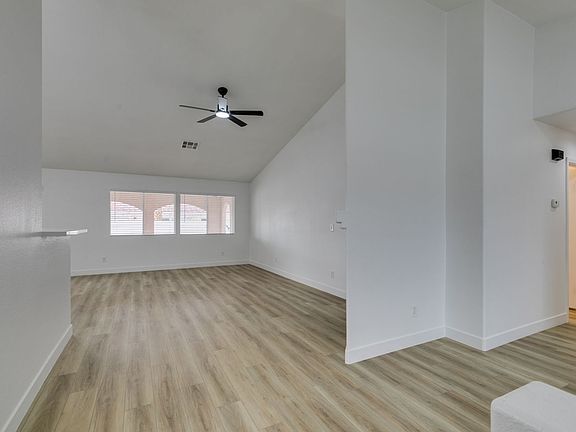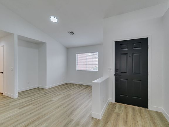 Beautifully updated three-bedroom single-story home near Aliante! This move-in-ready property features fresh paint, luxury vinyl plank flooring throughout, quartz countertops, upgraded cabinets, and stainless steel appliances. Enjoy the cozy fireplace off the family room, ceiling fans in every bedroom, and 2.5" white blinds throughout. The washer and dryer are included, and the low-maintenance desert landscaping with a covered patio makes outdoor living effortless. Conveniently located near shopping, dining, and parks this home is ready for immediate occupancy!