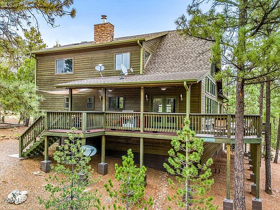''CUSTOM CHALET CABIN BORDERING NATIONAL FOREST'' Inside offers a large open great room with wall of windows, hardwood maple flooring & cabinetry, slate floors in kitchen, granite countertops, two 2 way stacked stone fireplace's, vaulted ceilings, skylights w/auto sun shades, 2 master suites w/walk in closets and showers, office, large family room, central heat & A/C and 3rd BDR off the garage. Outside enjoy the abundant wildlife and towering Ponderosa Pines from the expansive wrap around trex deck and 3 car garage. This pristine setting offers privacy but yet minutes from Heber-Overgaard amenities. This would make the perfect full-time home, part time retreat or with no HOA a very desirable short-term rental. This is a must see, hurry and call today for your private showing.