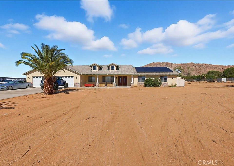 This is the one - Panoramic Valley Views in Sycamore Rock: Experience modern desert living in this stunning 4-bedroom, 3-bathroom home, built in 2002 and offering 2,994 sq. ft. of thoughtfully designed space on a sprawling 108,825 sq. ft. lot, just under 3 acres. Tucked away in a peaceful rural area of Apple Valley, this property provides the perfect blend of privacy and convenience.This property is ideal for those who love to entertain, store their toys, or simply enjoy the wide-open desert lifestyle. Don’t miss the opportunity to own this well-maintained property in a desirable location with room to grow and explore! 2 Master suites w/ private bathroom. Split floor plan. Oversized master w/ wet bar and fireplace on one end of the home. Walk in closets in 3 bedrooms. Fireplace in family room. Solar present. HWY 18 Sycamore Rocks Elementary School and Park is close by, along with Granite Hills High School. Amazing evening views from this property and instant desert access for all your off road adventures. Let's make this your new desert retreat today! Book your private tour!