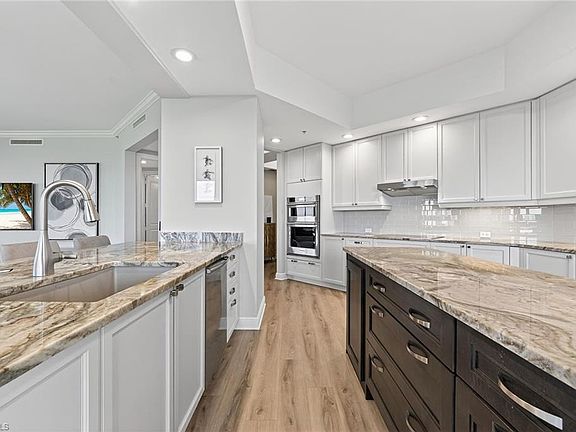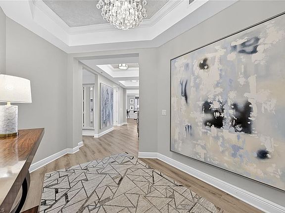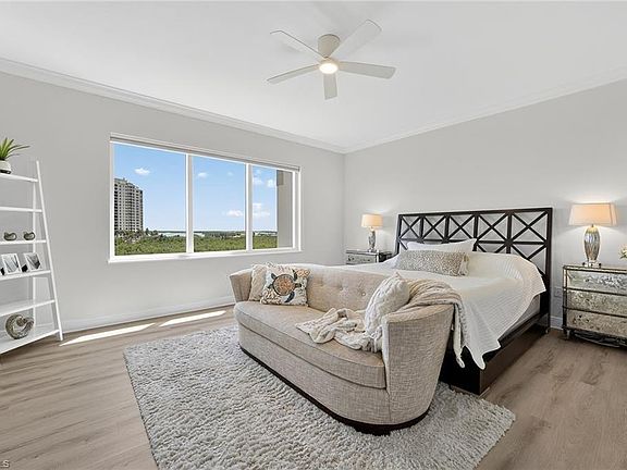 Welcome to this beautifully renovated high-floor end unit in Castella, where elevated luxury meets the tranquil beauty of Estero Bay. Perched above the treetops, this residence offers expansive, unobstructed views of the surrounding preserve and shimmering bay waters—an ever-changing canvas of sunsets, wildlife and coastal serenity. Inside, the completely refreshed interior exudes modern sophistication with upgraded finishes throughout. The open-concept floor plan is bathed in natural light, enhanced by floor-to-ceiling glass doors that lead to a fully tiled, oversized lanai, ideal for entertaining or simply unwinding with a breathtaking backdrop. The chef-inspired kitchen features sleek quartz countertops and premium stainless steel appliances, anchored by a large island ideal for casual dining and hosting. The spacious owner’s suite enjoys spectacular views and direct lanai access, a large walk-in closet and a spa-like bath. Two additional guest suites, each with en-suite baths, offer exceptional privacy and comfort. Castella is known for its lush, resort-style ambiance, highlighted by one of the most luxurious lagoon pools in the community, complete with a cascading waterfall, tropical landscaping and spa. The social pavilion, grilling area, and sun deck offer endless opportunities to relax or entertain. Additional amenities include two deeded parking spaces in a secure garage, a private courtyard with fountains, bicycle storage, and access to The Colony’s exclusive private beach island, tennis, pickleball, bocce, canoeing, kayaking and more, all included in the monthly fees, with no club membership required. The Bay Club offers unparalleled luxury while dining and enjoying the beauty of Estero Bay and beyond.