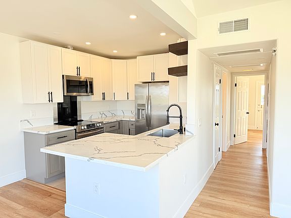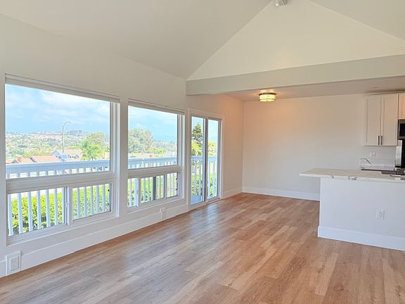 This fully remodeled, 3-bedroom, 2-bath upper-corner condo showcases ocean and mountain views and sits directly above its own one-car garage in a secure, gated community with extensive amenities. Inside, you'll find brand-new flooring, soaring cathedral ceilings, two spacious decks, and a newly redesigned kitchen with stainless-steel appliances. Additional highlights include new doors and hardware, ample closet space, and an in-unit washer and dryer. Residents also enjoy access to a community pool and tennis courts, plus an additional assigned covered parking space for a total of two parking spaces. Beautifully finished and truly move-in ready. Owner Pays water only, Tenant pays all other utilities and trash collection