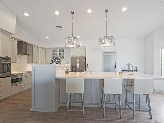 So many special touches - floors are ceramic plank, counters everywhere are quartz, induction stove top, even the dishwasher is elevated to allow easy access. Covered pavers patio and low view fence, third room is an office or guest area with Queen pull out sofa.