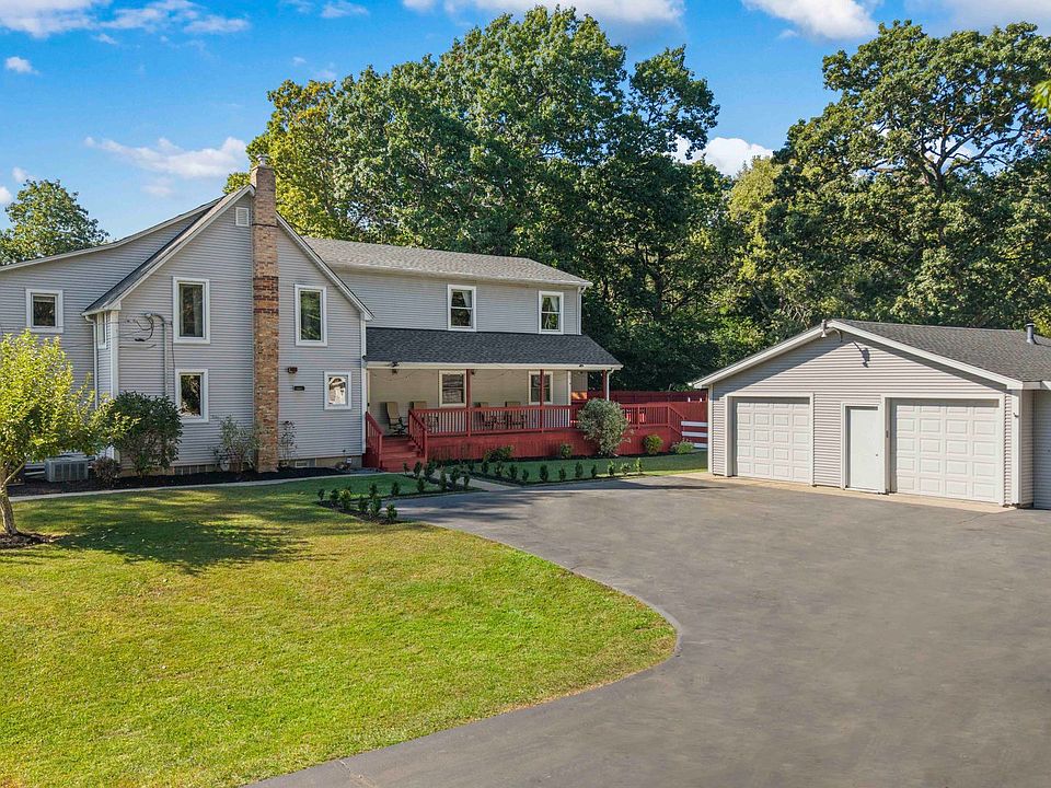 Discover the perfect blend of comfort, versatility, and country charm in this expansive 7-bedroom home set on nearly 4 serene acres. Designed with both privacy and flexibility in mind, the home features a dedicated in-law suite complete with its own kitchen, dining area, living room, and bedroom-ideal for multi-generational living, extended guests, or private rental space. When you enter, you can immediately feel the thoughtful layout. To the right, the in-law suite is set apart for privacy. To the left, the main living area welcomes you with a spacious kitchen, dining room, a first-floor bedroom, and a sun-filled office space. Upstairs, you'll find five additional bedrooms, including the huge master suite with its own walk-in closet, private bath, and backyard views. The home also boasts fresh paint in several areas, hardwood flooring in select spaces, and cozy carpeting throughout. The basement offers additional space perfect for creativity, hobbies, or storage, and it houses the laundry room as well. Outside, the property is equally impressive. A striking red deck-designed to complement the matching barn-features an above-ground pool built into the deck, creating a perfect gathering spot for summer fun. The acreage includes a livestock/horse barn, a chicken house, and plenty of room for gardening or homesteading. Mature trees frame the property, offering the feeling of a private retreat while still keeping you connected to neighbors, local shops, and restaurants just a short drive away. Whether you dream of tending to animals, relaxing poolside, or simply enjoying the beauty of nature in your backyard, this home offers a lifestyle of serenity and space with modern convenience close at hand.