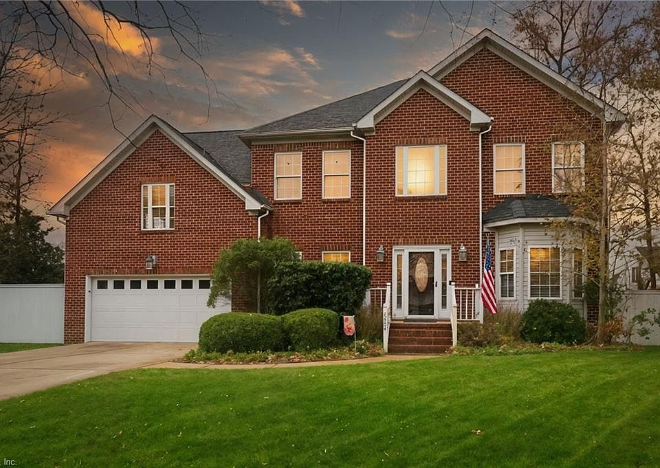 Welcome home to your spacious brick 4-bed, 3 full bath (one on first floor) gorgeous home situated on a cul de sac in the highly sought after neighborhood of Rollingwood in Kellam School District. Inside, you will be greeted by vaulted ceilings & arched windows that allow tons of natural light, a custom built office just off to the left, built in wine racks in the dining room & an expansive open concept kitchen with stainless appliances & real hardwood floors. Upstairs, you'll find 4 bedrooms with a large primary bdrm that includes a en-suite with double sinks, jetted tub & an oversized closet. Outside you will walk your deck to find an enormous in-ground pool that allows for the perfect entertaining space in the summertime. Recent updates include new roof (2022), upstairs HVAC (2023), Water Heater (2021). Conveniently located near hospitals, bases, schools, restaurants & shops. Add your final and scoop up this home before its gone!