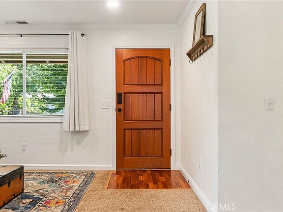 This charming remodeled home is located in the heart of Durham. Remodeled in 2008 with new HVAC, and kitchen this property is move-in ready. The sought-after features continue throughout the 3 bedrooms, 1 bathroom home, with a built-in work space with shelving and storage, laminate flooring with hardwood underneath, custom cabinetry, granite countertops, and crown molding. Enjoy all this while saving on PG&E with solar and enjoying indoor to outdoor living under a covered front porch with a fenced in yard and a back patio that leads to a mature backyard with Redwoods providing plenty of shade. Park your car in the cooled detached garage, while having additional storage in the shed. Don't miss your chance to make this move-in ready home with recently cleaned air ducts your own!