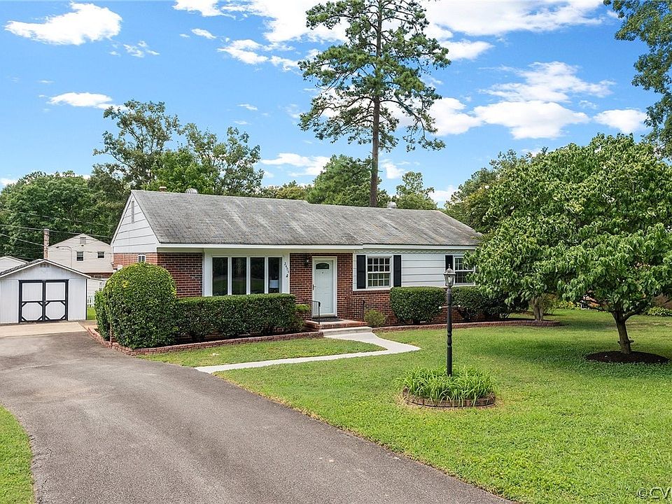 One level living at its best! Welcome to this well cared for brick rancher situated on a large, level lot. The home offers beautiful wood floors throughout. The large living room features a corner gas fireplace and recessed picture window. The eat-in kitchen offers updated cabinets, ceramic tile floor and all appliances. Head down the hallway to the 4 bedrooms, one being used as a den/TV room and another has custom built-in cabinetry. The primary bedroom has it's own private bath with corner shower. There is also a large, detached shed with electricity that would make a great workshop. A paved driveway and new sidewalk complete this wonderful home!