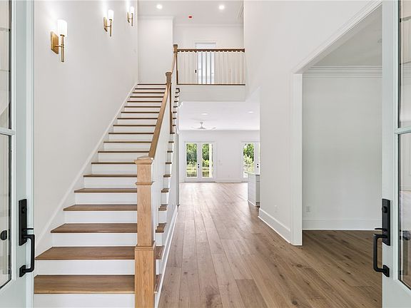 The main-level primary suite offers private patio access with serene lake views, and a thoughtfully designed layout for comfort and convenience. Upstairs, three spacious bedrooms each feature en suite baths. A separate guest suite or home office, located above the two-car garage with its own entrance, adds versatility and privacy. Designed for indoor-outdoor living, the home’s covered rear porch steps down to a tiled patio with a sparkling pool and sweeping lake views. With St Simons Land Trust property directly in front, your unobstructed setting is permanently protected. This is an exceptional opportunity to own a move-in-ready luxury home on St. Simons Island—where every detail has been crafted for elegance, comfort, and lasting value.