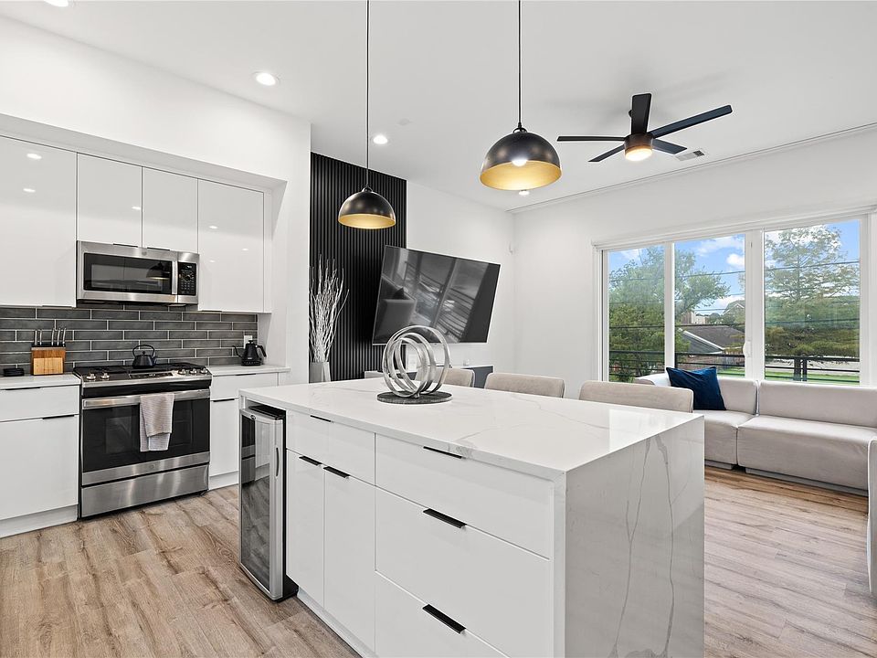 Step into 2,089 sq. ft. of modern living in the heart of Third Ward. This 3-bedroom, 3.5-bath home is designed for both comfort and style. The open-concept second floor showcases soaring ceilings, oversized windows, and a sleek kitchen with quartz counters, stainless steel appliances, and a generous island—perfect for entertaining. A private first-floor bedroom with an ensuite bath makes an ideal guest suite or home office. Upstairs, the primary retreat features dual vanities, a soaking tub, and a walk-in shower for a true spa-like experience. Enjoy two private balconies, secure gated entry, and a two-car garage. Just minutes from Downtown, the Medical Center, and East River Project. Contemporary style meets city convenience. Welcome home!