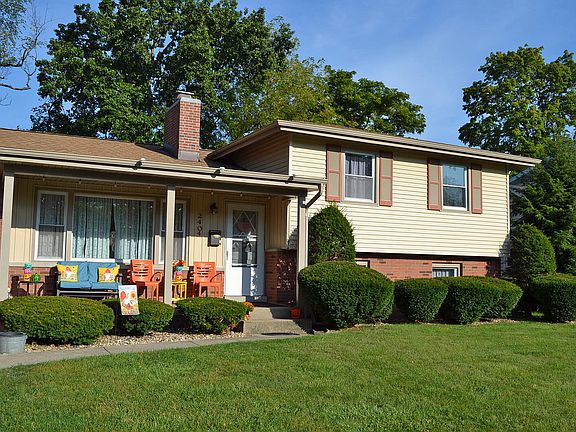 Great Center Township Location along school bus route! 2314 SF TRI-LEVEL Home for sale Valparaiso, IN 46383 perched on a 75x150 lot w/fenced backyard. Features: 4 Bedrooms, 4 Baths, 2 Car attach garage (another 440 SF)-transformer in garage stays, so home is generator ready. Inviting front porch. Long entry foyer w/guest closet. Spacious LR w/Picture window & stone Fireplace. Real Hardwood Floors under carpet in LR, FDR and 2 upstairs BR's. FDR off LR & Kitchen w/Picture Window & Chandelier. Kitchen totally remodeled 3 years ago = Beautiful new soft-close tall wood cabinets & pantry drawers, deep farm sink, gleaming granite countertops w/breakfast bar area, subway tile backsplash, luxury easy care vinyl plank flooring, new lights, ceiling fan, plumbing, fixtures and Stainless LG 5 burner range/stove/hood, Quiet LG Dishwasher, Samsung side by side Fridge/freezer w/ in door dispenser. Half bath off Kitchen has been totally renovated as well and is like new! Sliding doors off kitchen dinette area lead to nice size fenced backyard, deck, Inground pool & handy storage shed. Upstairs are 3 nice sized bedrooms with ample closet space, all have ceiling fans, master has 3/4 ensuite bath. Upstairs hall bath completely updated: awesome vanity with storage and walk in seated shower unit. 2 more closets in the upstairs hall. Downstairs 4th bedroom (has egress window and closet), Den, plus a laundry room and 3/4 bath, utility closet, and access door to backyard. More updates include: New Chimney March of 2025. New Air Purifier 2025. New Roof 2 years ago (transferrable warranty). HWH replaced 2018. Siding on home replaced in 2017. New Central A/C in 2013. New Furnace & water softener in 2011. All windows (except LR picture) replaced in 2009. Well insulated attic. Great Location & Price to make this house your home sweet home! Showings by appt. advance notice please. Seller pays buyers closing costs, points and mortgage interest rate buy down w/acceptable offer!!