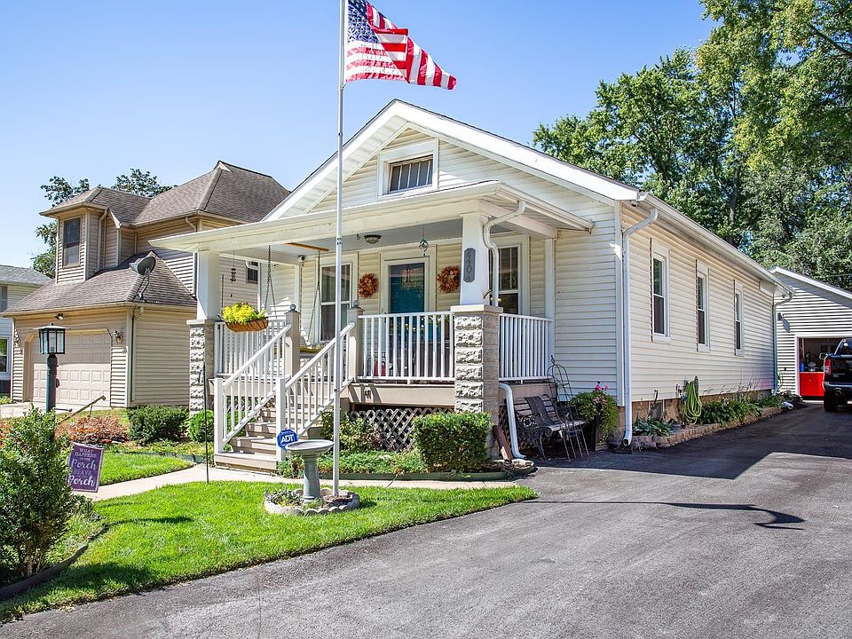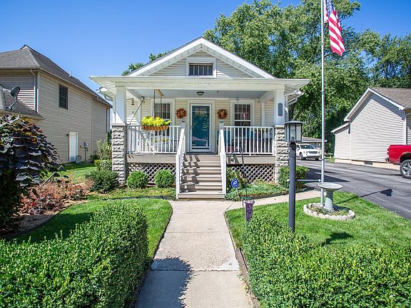 MOVE IN READY! Known as the Hampton model, a SEARS HOUSE right here in the HEART OF PORTAGE! This two bedroom, CLASSIC BUNGALOW has been meticulously maintained and updated all while focusing on the historic charm and its unique features. From the charming front porch swing and the manicured lawn, you know you are stepping into a quality home. Inside showcases master craftsmanship in the woodwork. Large main bedroom, remodeled bathroom, and updated kitchen with all appliances. Laundry on the main level. A full basement includes a workshop area and tons of storage space. New Carpeting, new siding, newer windows, and appliances stay. Outside, a new garage (built in 2020) with the enthusiast in mind with overhead doors on front and back. Smart entertaining and relaxing with a partially covered wood deck in backyard. Conveniently located between the Prairie Duneland Trailhead bike trail and Imagination Glen Park, and only a few doors from Ethel R Jones Elementary School, the location is FANTASTIC.