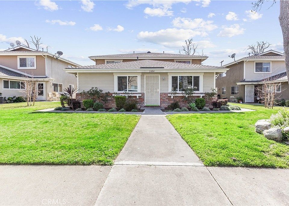 Welcome to 2404 Pepper St, La Verne 91750! This single story two bedroom one bathroom condo is located in the highly desirable, safe and quiet community of Villa La Verne. This community is FHA approved! The unit has an open-concept layout as the kitchen opens to the living room making it feel spacious. Beautifully updated kitchen with dark cherry wood cabinets, glass mosaic backsplash, granite stone countertops, stainless steel GE appliances (refrigerator, gas stove, microwave and dishwasher), stainless steel sink and a water filtration system included. Ceramic tile flooring throughout the kitchen, living room, hallway and bathroom. The two spacious bedrooms have plenty of closet space, mirrored closet doors and laminate flooring. Full bathroom in the hallway with tub, glass shower door and vanity. Newer windows throughout the unit. There is a two car garage with remote controlled door that is shared with a neighbor, in total there are two assigned parking spaces one in a shared garage and one driveway space. The garage has additional storage space as well. The laundry room is conveniently located in the building next to the garage. The community offers great amenities including 2 pools, bbq and picnic areas. HOA covers water, trash, sewer and exterior grounds and maintenance.