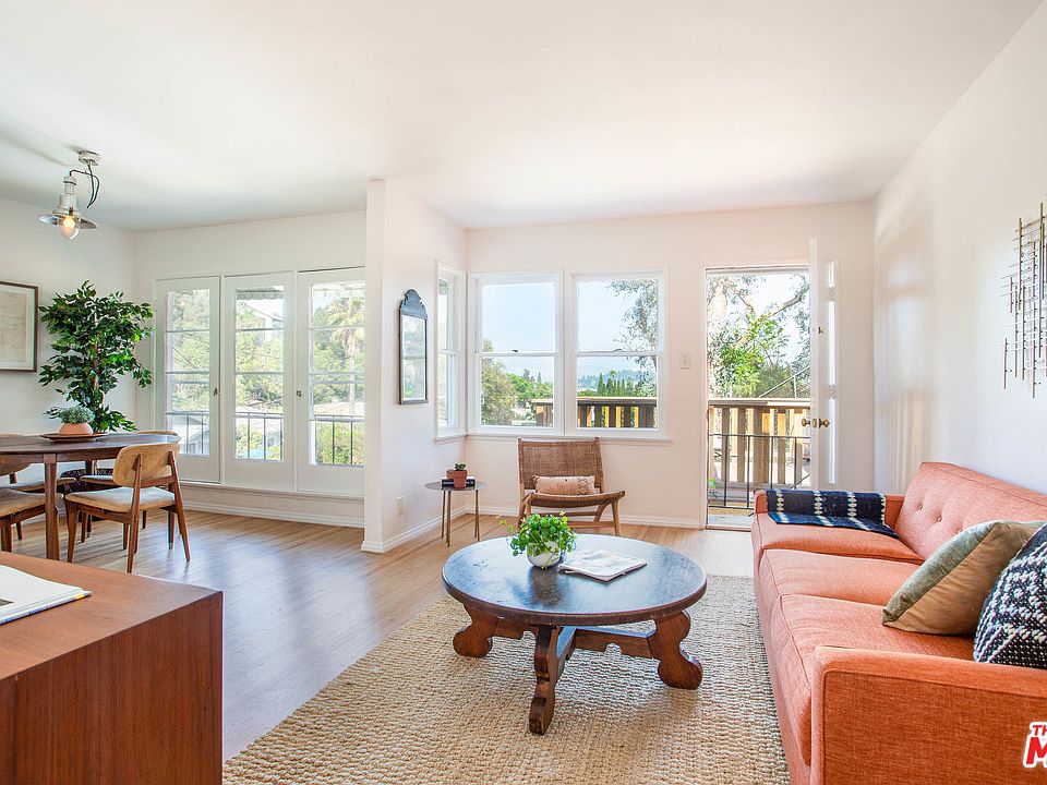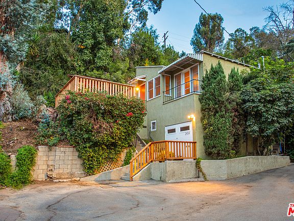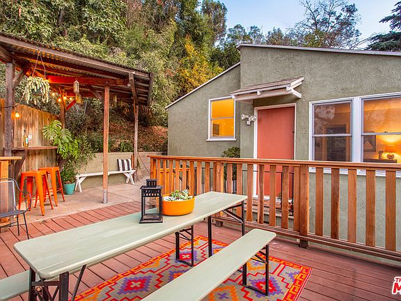 This sweet 1949 bungalow located in its own private corner of the Silver Lake hills is the kind of character home that makes you fall in love and romanticize a simpler time. Tucked behind The Corralitas Red Car Trail, this light, bright and airy home has been lovingly updated with modern comforts while retaining all its original charm. It features rich hardwood flooring, custom built-in cabinetry, a covered entry, and outdoor dining and chill zones. The charming treehouse sits on a generous R2 lot and has a truly perfect layout with the dining area flowing seamlessly from the living room to the kitchen. Below the home is a garage that has been converted to the perfect flex space that can be used for whatever dreams you have. The location hits the sweet spot of easy strolls to all the action in Silver Lake, Echo Park and Frogtown.