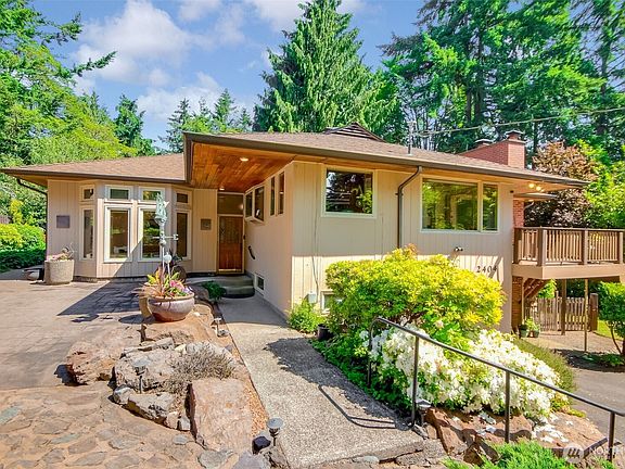 Magnificently landscaped oasis featuring garden, tiered planting beds, walkway lined w/mature growth, garden sheds & huge side yard w/boat & RV storage. Lot A Private deeded Beach Rights add summer value @ The Cove includes boat launch, tennis, fields, facility rental. Home has been lovingly maintained & includes opportunity for potential ADU in the basement -storage rooms = future conversion for added living space/kitchen. Exterior door off lower covered patio into FR. Office is at entry level w/windows for patio view. Main floor kitchen enjoys patio view while featuring abundant cabinetry, SS appliances & access to DR, LR & covered deck. Primary suite + 2 bedrooms on upper floor w/full hall bthrm. A/C & Gas Furnace, Newer Windows & Deck.