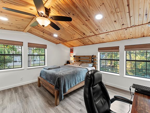 BEAUTIFUL WATERFRONT BARNDOMINIUM ON ALMOST HALF AN ACRE. THIS 3 BEDROOM 3.5 BATH HOME HAS WONDERFUL WATERVIEWS AND IS IN EXCELLENT CONDITION WITH VINYL WOOD PLANK FLOORS, OPEN DESIGN WITH WOOD BURNING STOVE, PRETTY KITCHEN WITH CUTTING BOARD COUNTERTOPS AND COUNTRY SINK. TWO UPSTAIRS BEDROOMS HAVE WOOD CEILINGS, WALK-IN SHOWERS IN BATHS, SMALL UPSTAIRS BALCONY, ONE DOWNSTAIRS BEDROOM AND BATH, HUGE OUTDOOR DECK AND LARGE COVERED SCREENED IN DECK, STEEL SEAWALL, BOATHOUSE, SEA-DOO LIFT, LARGE 2 DOOR GARAGE WITH FOAM INSULATION, LOTS OF PARKING, GATED ENTRY, NO RESTRICTIONS, NO POA, NOT IN THE CITY. GREAT LAKE HOME RETREAT, OR AIRBNB.