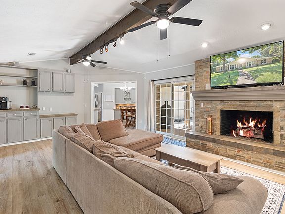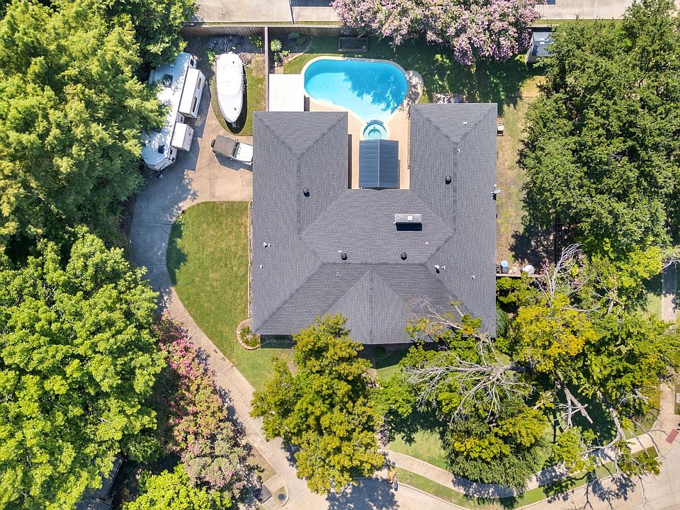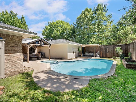 Nestled in the heart of Plano, TX, this stunning 4-bedroom, 3-bath residence offers a harmonious blend of modern elegance and comfortable living. Situated on an oversized corner, cul-de-sac lot spanning 0.39 acres, the home boasts a spectacular creek view, creating a serene oasis for you and your loved ones. As you step inside, luxury vinyl plank flooring seamlessly flows throughout the expansive layout, leading you through two spacious living areas perfect for entertaining. The home features beautifully updated windows that bring in abundant natural light, accentuating the fine finishes and modern updates. The well-appointed kitchen is a chef's dream, equipped with stainless steel appliances and anchored by a custom coffee bar in the adjacent living room, complete with a water line, ideal for morning brews. The primary suite is a private retreat, offering a spa-like bath complete with premium upgrades. An additional mother-in-law suite provides flexibility for guests or multigenerational living. The dedicated office space caters to today's work-from-home needs, ensuring productivity in a comfortable environment. Outside, the property continues to impress with an oversized 2.5 car garage, RV and boat parking, and RV-EV charging capabilities. Adventure seekers will appreciate the tornado shelter-safe room for peace of mind. Relaxation awaits with a re-plastered and re-tiled in-ground gunite pool and spa, complemented by updated pool equipment. Enjoy outdoor gatherings under the charming pergola and gazebo, or simply unwind amidst the refreshed landscaping and freshly painted exterior trim and siding. Major updates include replumbed water lines with a manifold system and more. Discover a home that meets every need while providing a tranquil escape from the hustle and bustle, perfectly embodying the best of Plano living.