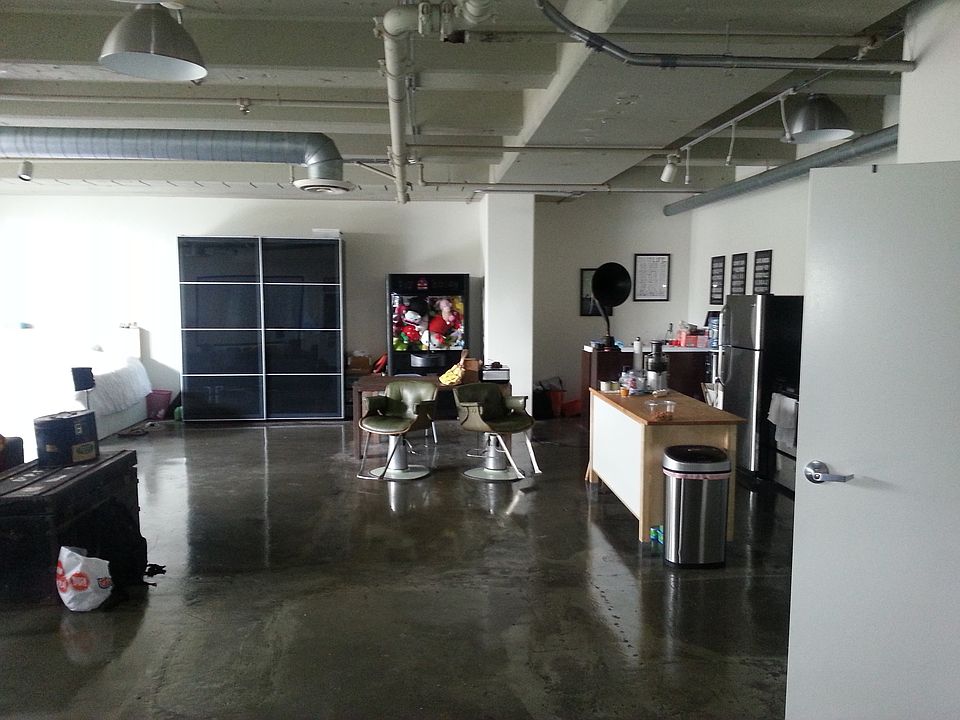 The American Cement Building located outside of downtown LA has a 4th floor unit open with a large patio. Parking in the garage is $80 per spot, you will have to pay your share of water, gas, sewer, and trash billed monthly estimated at $40 per month. You will need to establish power and cable in your name.