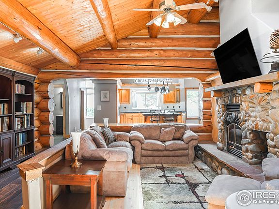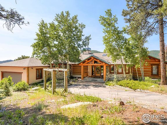 A rare blend of seclusion, craftsmanship and panoramic beauty, this custom British Columbian log home offers captivating views from every angle. On top of the mountain perched on 10.88 forested acres of pine, aspen and dramatic rock outcroppings, this residence showcases sweeping vistas of both the City and surrounding mountains. Designed for connection to nature and timeless comfort, the interior features cathedral ceilings, expansive south-facing windows and warm wood-look tile flooring. A spacious main-level primary suite boasts a remodeled bath, jetted tub, walk-in shower and direct access to a private sunroom and deck. The kitchen highlighted by a large pantry flows seamlessly into a cozy den with a river rock wall and a wood stove insert, ideal for entertaining. Additional highlights include two fireplaces, a versatile office, laundry room and a lower-level retreat. Bordered by Meyer Ranch and Denver Mountain Parks open space, this home sits just moments from Hwy 285 and the town of Conifer, Aspen Park + Morrison