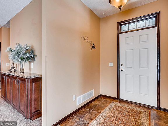 This is a "Must See" 2-bed, 2 bath, 2 car garage main floor living townhome in Rogers. Large ceramic foyer flows into huge vaulted dining room/living room with carpeting, ceiling fan and recessed lighting. Spacious kitchen with upgraded vinyl wood like flooring, cherry stained raised paneled staggered cabinets, backsplash, center island with raised breakfast bar, stainless steel appliances, cherry stained crown molding. Large informal dining room with built-in, cherry stained buffet, chandelier. Office with French Doors off living room. Master bedroom has vaulted ceilings, and separate seating area/sitting room, large walk in closet, ¾ master bath with ceramic flooring and ceramic tile shower surround. Second full bathroom with ceramic flooring, vanity and upper cabinets for storage. Laundry room with full size W/D. Garage is sheet rocked and insulated, wire shelving and attic storage space. Updates throughout including new Levelor shades and valances, ceiling fans.