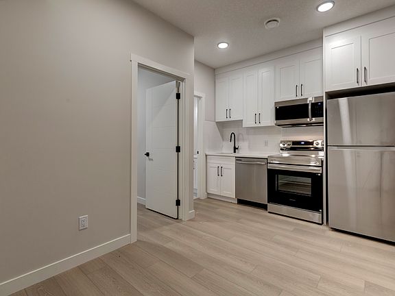Step into this bright, thoughtfully designed 2 bedroom, 1 bathroom legal basement suitenever before lived in and ready for you to call home. The private entrance welcomes you with modern finishes and a smart layout that maximizes both comfort and storage. Inside, you'll love the contemporary kitchen featuring full-size stainless steel appliances, sleek cabinetry, and a stylish tile backsplashperfect for home-cooked meals or entertaining friends.