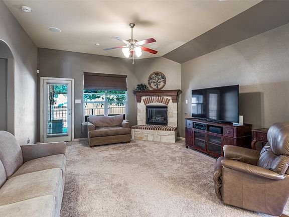 Nestled in the sought-after community of Sunset Pointe, this property offers the perfect blend of convenience and lifestyle, with its resort style community amenities of pickleball and basketball courts, playgrounds, pools, picnic areas, and walking trails, all within walking distance. Walk up to this home and find that you are greeted with beautiful curb appeal with stone columns framing the front porch that hints at a well-loved home inside and out. Step inside to find an exceptionally well-maintained home with newly updated carpet and fresh interior paint. The heart of the home is the kitchen, boasting sleek granite countertops, an island for additional prep space, and abundant cabinetry. It seamlessly flows into the family room, where a striking stone gas fireplace with a hearth promises cozy evenings with a picturesque view of the backyard. The primary suite is a serene retreat, featuring a walk-in closet and an ensuite bath complete with a garden tub, dual sinks, and a separate shower, providing a spa-like experience at home. A versatile bonus room off the entryway is currently utilized as an office, offering tranquil views of the landscaped front yard, ideal for remote work or creative pursuits. Discriminating buyers will appreciate updates from the roof replacement in 2023, the addition of front and back storm doors, HVAC replaced in 2020, gas water heater replaced in 2019, carpet, and interior paint. Outside, the meticulously maintained backyard is a verdant oasis featuring garden beds, a large grassy area, and an 8 x 8 storage shed. The covered back patio is an entertainer’s dream, equipped with custom remote-controlled screens for comfortable outdoor gatherings. Sunset Pointe borders the west side of Frisco, offering easy access to a vibrant array of shopping, dining, and entertainment venues or nearby Lake Lewisville. Zoned for Frisco schools, makes this an ideal choice for those who seek access to highly ranked schools.
