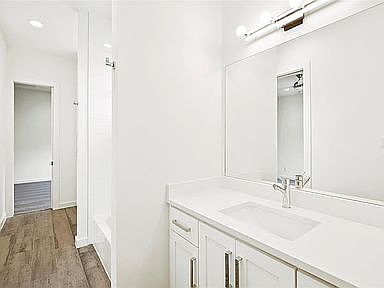Tile bathroom floors. Upon entry you walk into the open dining with wet bar into the kitchen and living. Kitchen host an oversized quartz island perfect for dining and entertaining. The 3 sliding glass doors open to the lush backyard with 8 ft privacy fence for your out door oasis. Balconies off bedroom up stairs as well. Pets welcome. 12-24 month lease. APPLY ONLINE AT GSIINVESTMENTS.COM