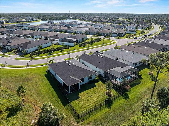 Welcome Home to Cedar Grove! If you’re searching for a beautiful home in a highly desirable community, your search ends here. This stunning 3-bedroom, 2-bathroom 2 car garage home built in 2023 offers the perfect blend of style, comfort, and convenience — all set on one of the best lots in the neighborhood, featuring unobstructed woodland views for added privacy and serenity. Step inside and be greeted by a bright, open floor plan that seamlessly connects the living, dining, and kitchen areas. High ceilings, expansive windows, and large format tile floors fill the home with natural light and create a warm, inviting atmosphere—perfect for entertaining or everyday living. Thoughtful upgrades such as designer interior doors and tall baseboards add a refined touch throughout. At the heart of the home is the gourmet kitchen, complete with sleek stainless steel appliances, a walk-in pantry, solid surface countertops, and white shaker-style, soft-close cabinetry. A large center island with bar seating makes this space ideal for both cooking and conversation. The kitchen opens to a spacious family room that flows effortlessly to the lanai—your ideal spot for relaxing or hosting guests. The primary suite is a true retreat, showcasing a luxurious ensuite bath with double vanities, a walk-in shower with seamless glass enclosure, and a massive walk-in closet. The split floor plan provides added privacy with two additional spacious bedrooms and a beautifully appointed guest bath. Located just minutes from I-75, US 41, and some of the area’s best shopping and dining, Cedar Grove offers both convenience and tranquility. Community amenities include a resort-style pool, covered playground, half basketball court, waterfront serenity area, and sidewalk-lined streets with underground utilities and high-speed internet. Best of all, lawn maintenance is included in the low HOA fee—covering mowing, edging, trimming, weeding, blowing, and irrigation—so you can spend more time enjoying life and less time doing yard work. Don’t let this dream home become someone else’s address—schedule your private showing today!