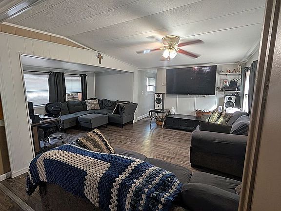 This lot has a huge backyard, 1 car garage, updated floors, bathroom, skirting around the home, grilling area, new built back patio/deck, new built front porch, and has a mudroom/ front entrance.
