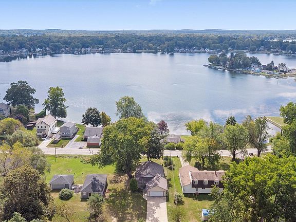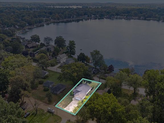 SELLERS NEXT PROPERTY FELL THRU, THIS HOME WILL BE BACK ON MARKET AS SOON AS WE FIND “THE ONE”! Waterfront living year-round with this cozy and conveniently located ranch across the street from Duck Lake! All the perks of living by the lake without the extra costs. Offering 1262 sq.ft. of living space, this home features three bedrooms and two full baths. Covered front porch is great for enjoying time outside, rain or shine. Long driveway comes in handy when having people over. Modern kitchen and dining space with ample white cabinetry, wood countertops, and contemporary silver light fixtures. Island in the middle of the kitchen offers additional cooking and prep space, plus bar seating. This open-concept layout is a host's dream - the kitchen and dining room flowing into the living room. The high, sloped ceiling adds character to the space. Sliding glass doors lead to the raised deck and patio space overlooking Duck Lake. Spacious full bath located just off the main area, plus two sizeable bedrooms. The primary bedroom has it's own large full bath with lovely tile and huge vanity, plus a walk-in closet! Primary also has it's own set of sliding glass doors leading to the deck. Laundry room offers access to the two-car attached garage. Outside, a cozy oasis with raised deck and tiled patio space, with a fire pit off to the side. Trees on either side of the deck offer some privacy, while keeping the view of the lake unobstructed. Enjoy serene nature views and lake living year-long with this home! Conveniently located - walking distance to Highland Hills Golf Course. Schedule your private tour today!