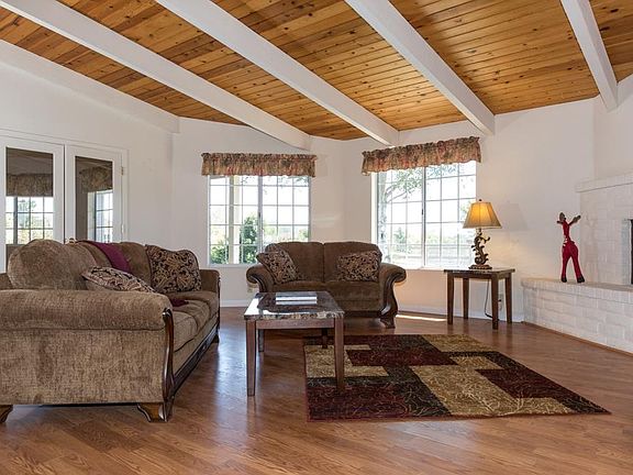 This private home rests on approximately 3 secluded acres with a gated entry. The spacious residence spans over 3400 +/- sq. ft. featuring 4 bedrooms, 2 full baths & 2 half baths. The formal living room boasts vaulted wood ceilings, a fireplace & fabulous views of the nearby mountain ranges. The updated kitchen has granite counter tops and double ovens, with an open floor plan leading into the over-sized family room, complete with a custom brick fireplace. The master suite has vaulted ceilings, corner fireplace & French door leading to your private garden oasis. There are numerous covered porches, lovingly tended flower beds, rose garden, and a variety of fruit trees, all which harmonize perfectly for year round outdoor entertaining. The property features an oversized 3 car detached garage, a separate workshop, barn, tack room and several pastures. New solar system provides electricity to the home. This is Santa Ynez Valley country living at its finest.