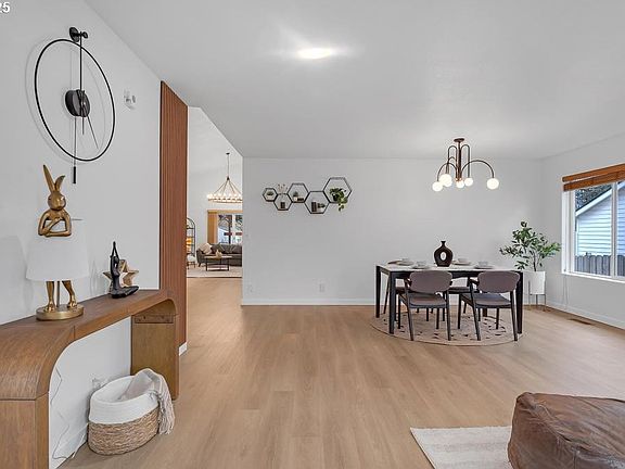 Come see this beautifully remodeled and well-maintained one level home. Located in Eagle Estates neighborhood, offering 1,884 sqft of comfortable living space with 3 generously sized bedrooms and 2 full baths. The inviting great room, with its impressive 15-foot vaulted ceilings, flows effortlessly into a warm and stylish kitchen featuring custom-upgraded cabinets, modern stainless steel appliances, and a charming tiled backsplash. The primary suite offers a luxurious retreat, featuring a spa-inspired bathroom with dual vanities, a walk-in shower, a relaxing soaking tub, and a walk-in closet. The two additional bedrooms are moderately sized, offering excellent natural light and brand-new light fixtures.Step outside to relax on the covered backyard deck, surrounded by a low-maintenance yard designed for easy enjoyment. Don’t miss the opportunity to own this rare, better-than-new ranch home! Enjoy nearby shopping plaza, entertainment, and freeway access Within 15 minutes of downtown Vancouver & Portland.