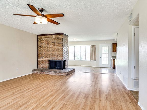 Brick fireplaceLarge lotLaminate flooringRear patioCharming bay windowGenerous dining areaFenced backyard