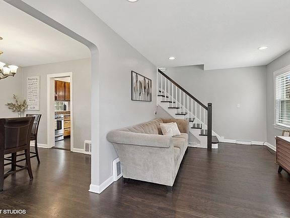 Simply lovely is what you'll think. This updated 2-bedroom, 1.5-bath Georgian on a well-maintained Broadview block will impress. Freshly-painted with refinished hardwood floors, this home is truly move-in ready. Enjoy meals in this dining room with bay window overlooking the large front yard! The kitchen boasts granite countertops and stainless steel appliances. Upstairs, two spacious bedrooms, ample storage, and a spotless bath. Super-chic hangout in the finished basement has vinyl flooring, half bath, and utilities. Step out to a sprawling, fenced backyard with a patio, spacious side drive, and well-maintained garage. This location is ideal, near schools and convenient shopping, dining, and fitness at Broadview Village Square! Don't miss this one.