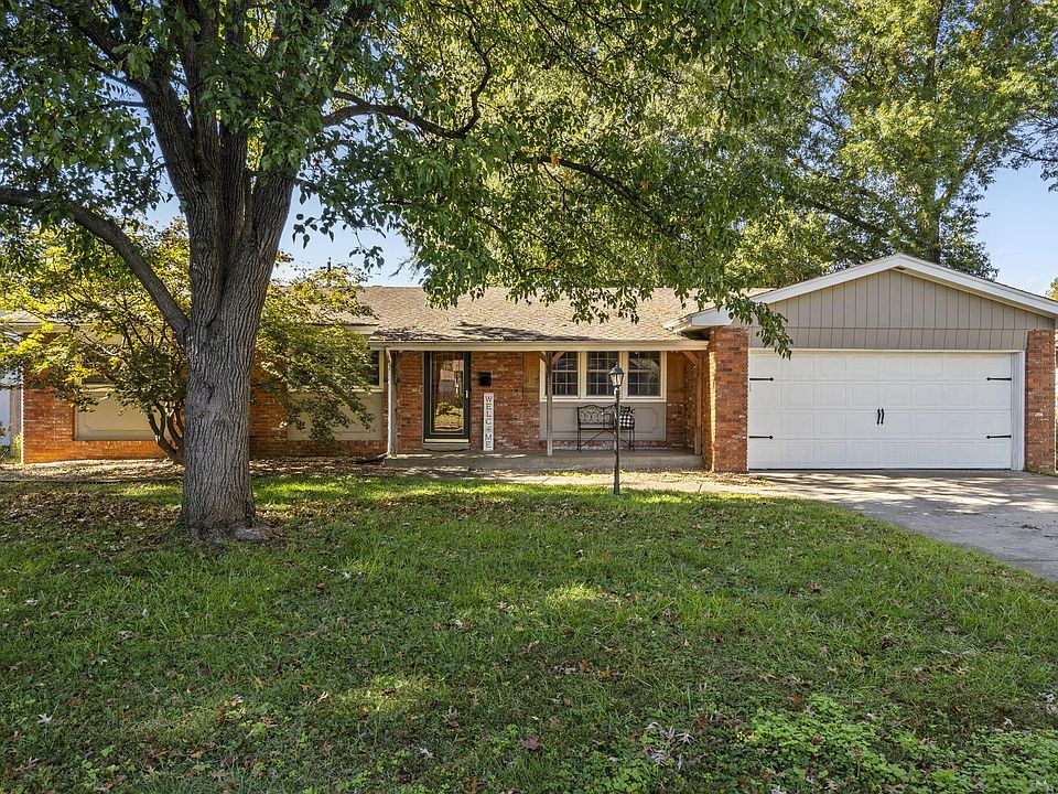Charming move-in ready 3 bed, 2 full bath home just south of Mercy hospital in Springfield! Lovingly maintained by the current owner, this home exudes curb appeal with the custom address stone and covered front porch. Inside features 2 separate living areas, hardwood and laminate floors (no carpet!), updated double-pane windows throughout, and full bathroom in the primary suite. The kitchen is open to the dining and hearth room, and has single-basin sink with new faucet, stainless appliances, and pantry! Other thoughtful updates include combo code front door handle, Nest thermostat and doorbell (can stay), upgraded door handles and floor registers, and smart garage door motor. Step out the double back doors to the fantastic patio and back yard complete with full privacy fence. Quiet street and exceptional south Springfield location blocks from Mercy hospital, and minutes to MSU, Cox hospital, and countless south Springfield restaurants and shops. This home won't disappoint, so come see it today!