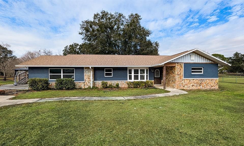 Beautifully Updated 3/2 on Over an Acre – Bring the Family & Animals! Nestled on a fully fenced lot at the end of a quiet dead-end street, this updated home offers peace, privacy, and room to spread out. With over an acre of land and large open spaces, it’s perfect for family gatherings, pets, and outdoor fun. The property includes a massive above-ground pool, ideal for pool parties or relaxing on warm days. This home features architectural details inside and out, vinyl windows, and tile & wood flooring—NO carpet! The large open deck off the family room is perfect for entertaining, and the family room itself boasts a real wood-burning fireplace, skylight, and crown molding. The open kitchen includes granite counters, tiled showers, updated overhead lighting, and a large window overlooking the expansive front yard—perfect for keeping an eye on the kids and pets or enjoying your own landscaped view. The dining area can double as a family room, and the formal dining area features a charming bay window with a window seat. Additional features include: 30-amp RV hookup Garage/workshop with opener Ceiling fans and updated lighting throughout Conveniently located just minutes from The Villages, Belleview, and Ocala, this home is a must-see!
