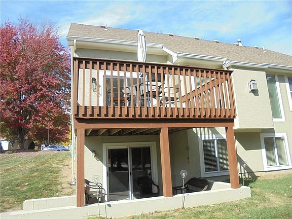 Beautiful reverse 1 1/2story Villa with gorgeous setting of trees lining back yard area. Unique 4 bd, 3 full baths. Semi-vault in living room ceiling, large room sizes. Egress windows in both bedrooms in lower level. New large custom shower in Mstr and new vanity, stainless appliances, new granite counter & backsplash updating kitchen, (hanging pan rack does not stay); new TREX deck 2022, new interior paint 2022. Lower level has large family room, walk out and full bath & two bedrooms, or could be used as play room/game room. Additional bonus of large unfinished area for storage or craft area. Covered patio area gives privacy to open back yard area.
