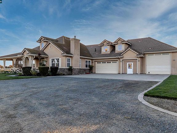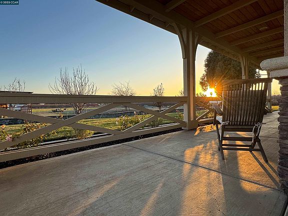 2405 Sunset Rd. is a stunning custom-built, single-story home on 9.54 acres in Knightsen, just outside Brentwood. Built in 2003, this 3,071 sq. ft. residence features spacious living areas, wrap-around porch, landscaped gardens, fruit trees, & manicured lawns. A gated entrance & tree-lined driveway create a grand arrival. Designed for equestrian enthusiasts, the estate includes oil pipe fencing, a custom six-stall equine structure, professional six-horse Q-Line exerciser. Ideal for breeding, training, boarding, or scenic trail riding. This 5-bedroom home blends bright, updated European elegance with rustic stained concrete floors, high ceilings, plantation shutters, recessed lighting, granite countertops, & ceiling fans. The master suite boasts a sitting area, ensuite with Jacuzzi tub, dual vanities, & a walk-in closet. Additional features include a formal living and dining room, office, and gourmet kitchen with a breakfast nook, large island, in-ceiling sound system, Butler’s pantry, & great room with fireplace. Modern conveniences include a tankless water heater & water softener. Outside offers space for an outdoor kitchen, RV parking, & a turnaround area. A private guest bedroom behind the three-car garage includes a full bath and yard