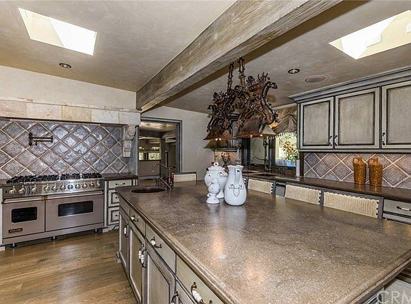 Welcome to your dream designer home! Your once in a life time opportunity to own a piece of art! This completely and meticulously remodeled home in 2010, is designed by well respected interior designer as his personal residence. This 4-bedroom, 3.5 bathroom over 3100 square foot masterpiece is located in the beautiful Monte Malaga neighborhood of the Palos Verdes Estates. The details of the remodeling are astonishing. The attention to details can be seen in every inch of this prestigious villa. The entire home has a personal touch, a story that thrills the more discriminating palette. This home features Venetian Plaster walls and ceilings, Upholstered walls, Crestron Music System, Antique limestone fireplace, Antique sink and hood in the kitchen, custom hand painted Tera Cotta tiles throughout, high end Rohl and Waterstone plumbing fixtures, Naos Forge custom lighting in the kitchen, French oak wood flooring, Walker Zanger brown limestone on counters and flooring borders and custom European hand glazed cabinets, just to name a few! The home has used a neutral palette that enjoys views of the stunning lush landscaping and greenery which is as glamorous as the inside. Enjoy the outdoor living in your private expansive backyard by the pool and SPA with beautifully designed BBQ area and outdoor fireplace, all designed for entertaining. This home will stand the test of time and is sure to spellbind at first entry.