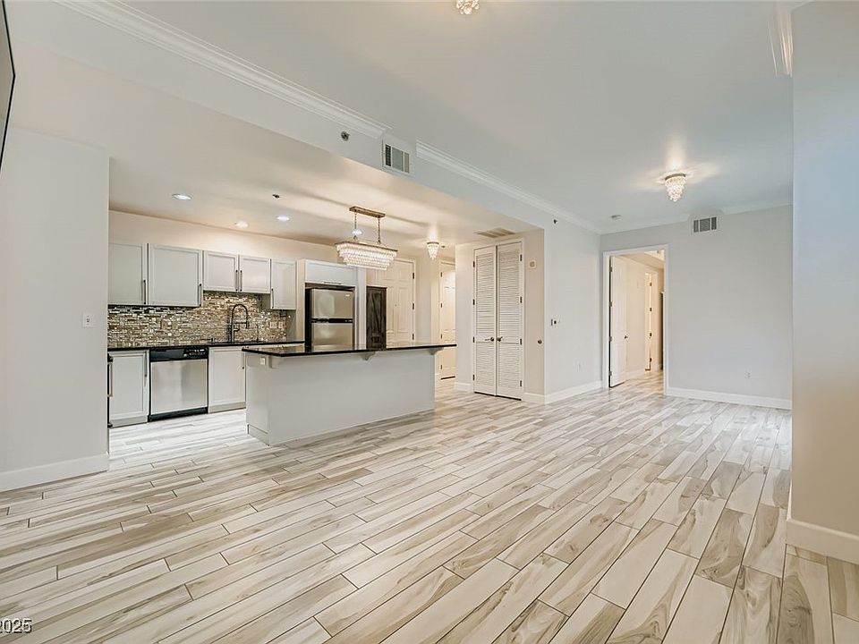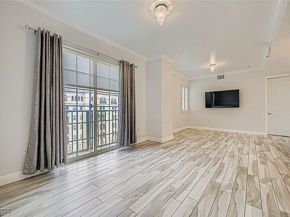 Fantastic move in ready 2 bedroom condo - 1196 SF @ Boca Raton conveniently located on the south end of the Las Vegas Strip. Enjoy updated kitchen w/ island, stainless steel appliances & modern wood-look porcelain tiles throughout. 2 full primary bedrooms w/ walk-in customized closets. 2 spacious primary bathrooms. One of the primary bedrooms has built in king size Wilding Murphy bed allowing for office by day and bedroom at night. LED light fixtures & Plantation shutters throughout. HVAC installed in 2022 w/ air purifying system. Wash/dryer combo in closet. 24/7 guard gated entry, fitness center, pool with cabanas, 2 spas, steam & massage room, BBQ areas, dog park, computer/theater rooms & conceirge services. Near I-15 & 215 freeways, shopping less than 4 minutes away and close to airport. 3 mounted 50" plus Televisions, located in the living room & both primary bedrooms, included in the sale of the property. Condo was being rented at $1800 monthly - great investment opportunity.