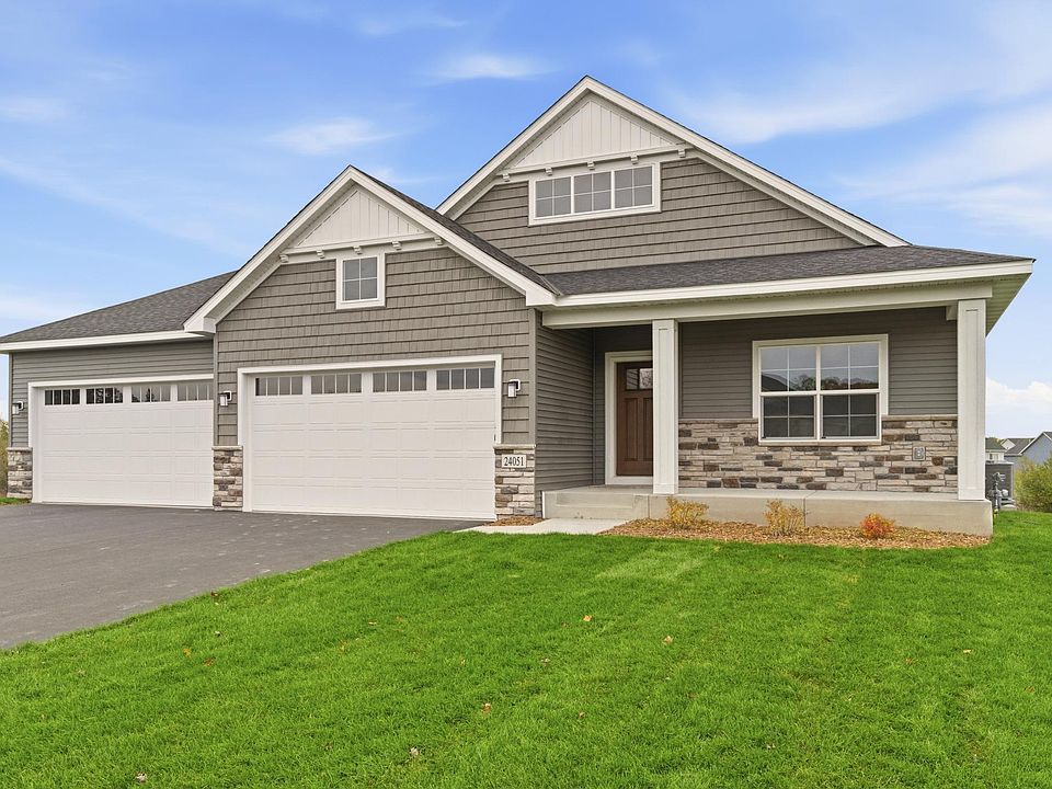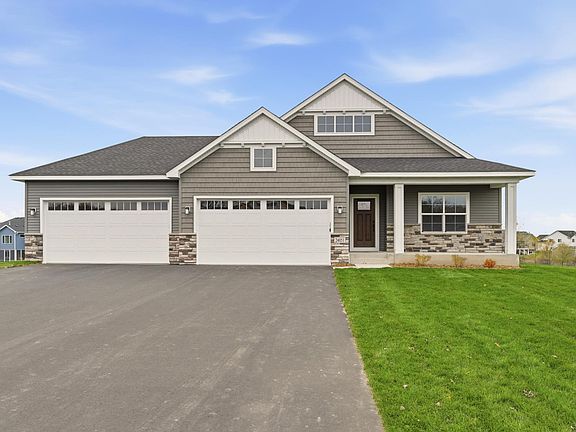 Monthly HOA dues include water/sewer, 1,800+ ft of lake shore w/ 2 docks, beach, pavilion and a satellite. JP Brooks presents the Somerset Elevation B Floor Plan on a Walkout Lot w/ a 4+ car garage, insulated, 8' tall doors, 3rd & 4th stall having large workshop area! All living facilities on the main level. Desirable Shores of Eagle Lake development with stunning deeded access to the lake, community trails & untouched nature/mature trees/wildlife. UPGD GK w/ DBL wall oven, UPGD refrigerator, gas stove top, 42" upper cabinets w/ soft close, 8' island, crown molding, tiled backsplash, under cabinet lighting, and quartz counters! Vaulted entryway w/ shiplap & crown! Vaulted LR ceilings w/ beams, gas fireplace, built-ins. 4 season porch, w/ ceiling fan! Vaulted PB w/ ceiling fan, LS w/ separate tub/shower. LL FNSHD WO w/ wetbar & fireplace. Pictures, photographs, colors, features, and sizes are for illustration purposes only and may vary from the home that is built.