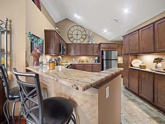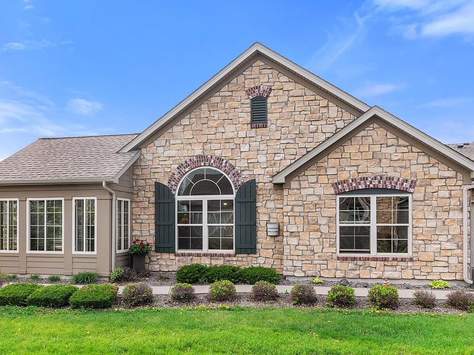 One level living with all the amenities! Escape to the expansive owners suite with high vaulted ceilings, private primary bathroom with walk-in shower, dual sinks and separate walk-in closet attached. Never run out of cabinet space or counter space in this kitchen. SS appliances, separate pantry space and outlets galore certainly add to the convenience level. Bedroom #2 is large and bright with windows overlooking the backyard stamped concrete patio. The office with high vaulted ceilings, glass French doors and so much natural light looks over the wildlife in the backyard pond. Relax in the bright sunroom, or watch TV in the living room with hardwood floors and a cozy fireplace. Wait, the heated/ insulated garage is large enough for a full size pickup and another SUV! Need storage? Use the storage rm off of the laundry rm, or pull the ladder down in the garage for attic storage. The clubhouse has a full kitchen, fireplace, living room, dining rm, workout rm, bathrooms, and shared pool!