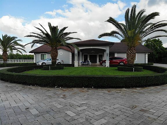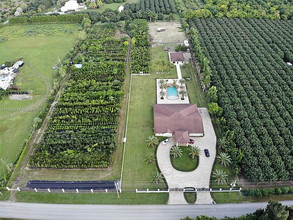Gorgeous 5-acre property in Homestead, entirely rebuilt in 2012 with a tile roof and marble floors across the entire house with spacious kitchen, premium wooden cabinetry, Golden Juparana granite countertops, high-end stainless steel appliances. It has oversized bedrooms, walk-in closets with built-in cabinetry and bathrooms with hot tubs/jacuzzi. Master bathroom has a Roman hot tub, separate shower, bidet, and dual sink. Property has a separate in-laws/guest house that measures 1,220 sq ft with 2 beds and 2 baths in addition to the 4 beds and 3 baths in the main house. Other features include, double electric gates, a Den (laundry room+Office), a large covered terrace with a utility closet, and a salt pool with a jacuzzi and water well (water cost only $50 yearly to county).